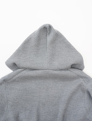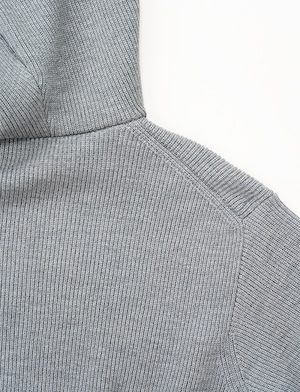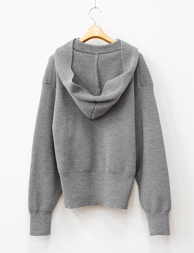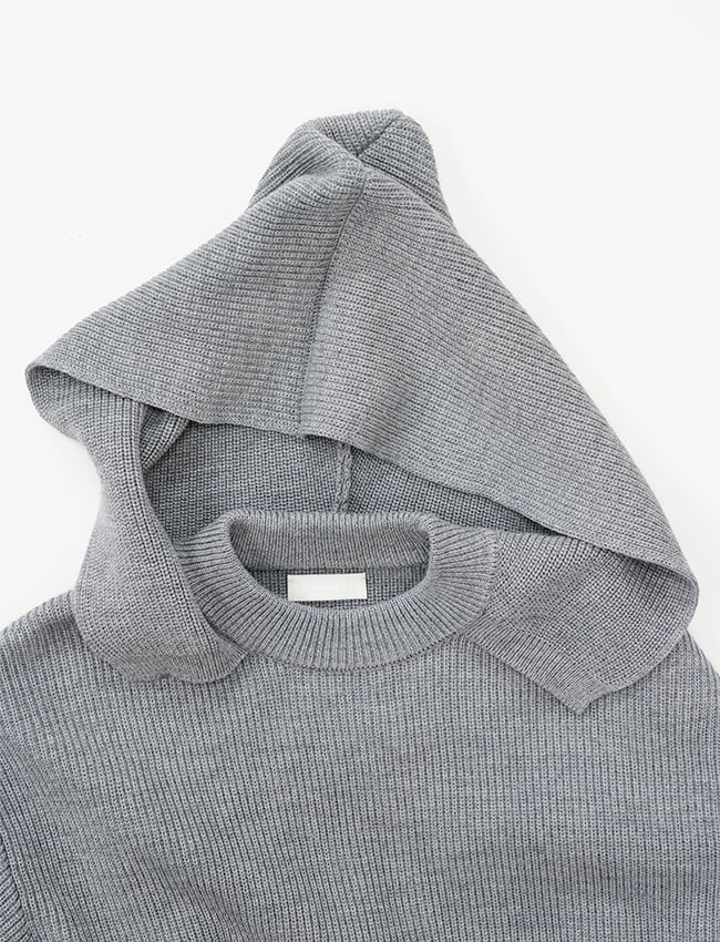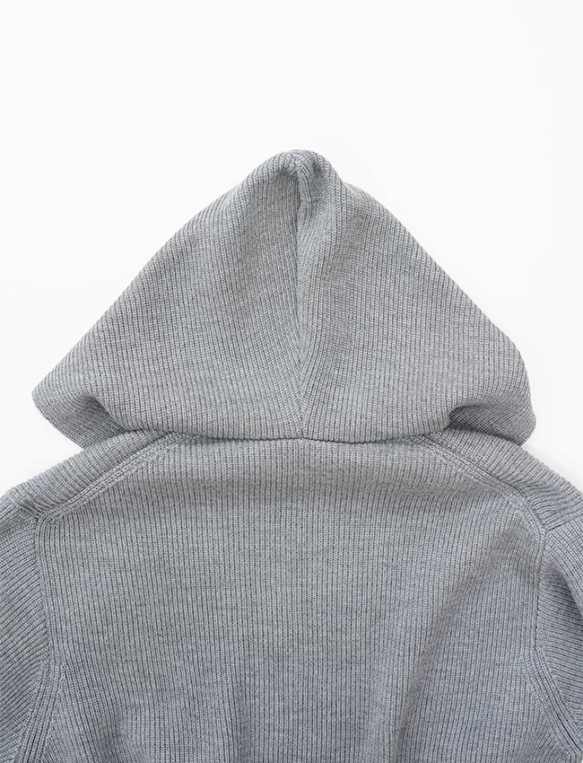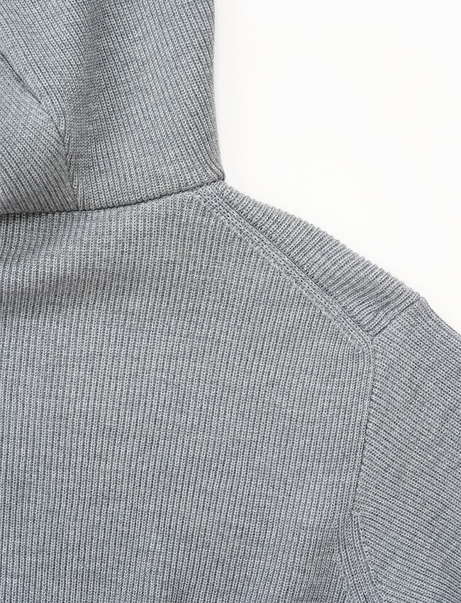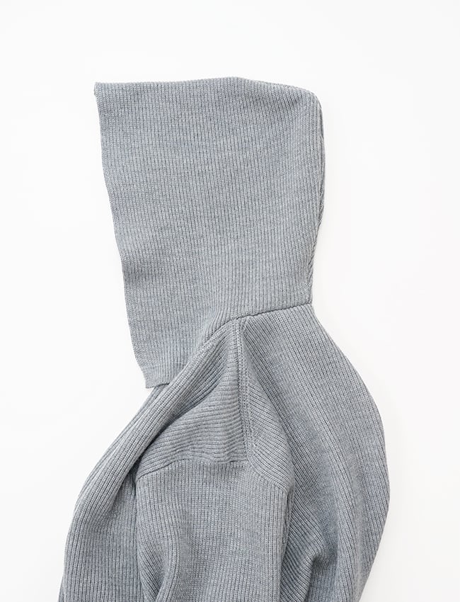 一目で伝わる、隅々までぎっしりと詰まった密感。寒暖差の激しい、東欧の山岳地帯。そこで育まれた「ちぢれの強い羊毛」を、限界まで凝縮したニットフーディです。