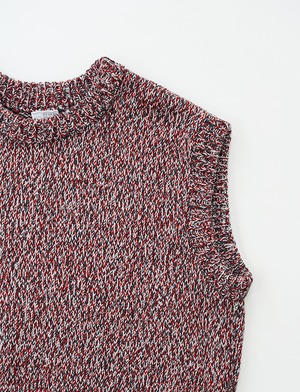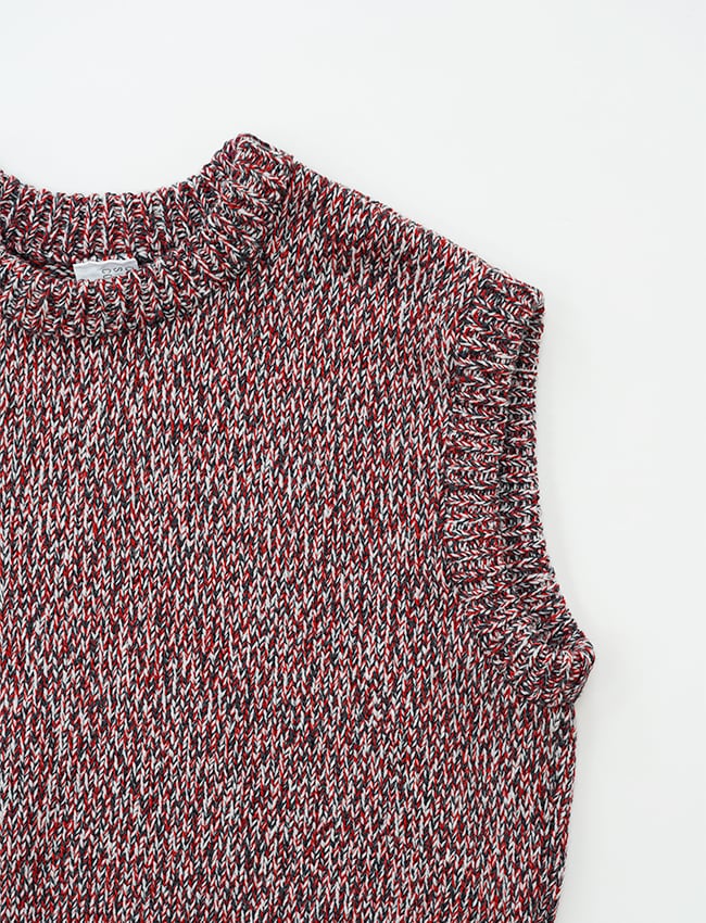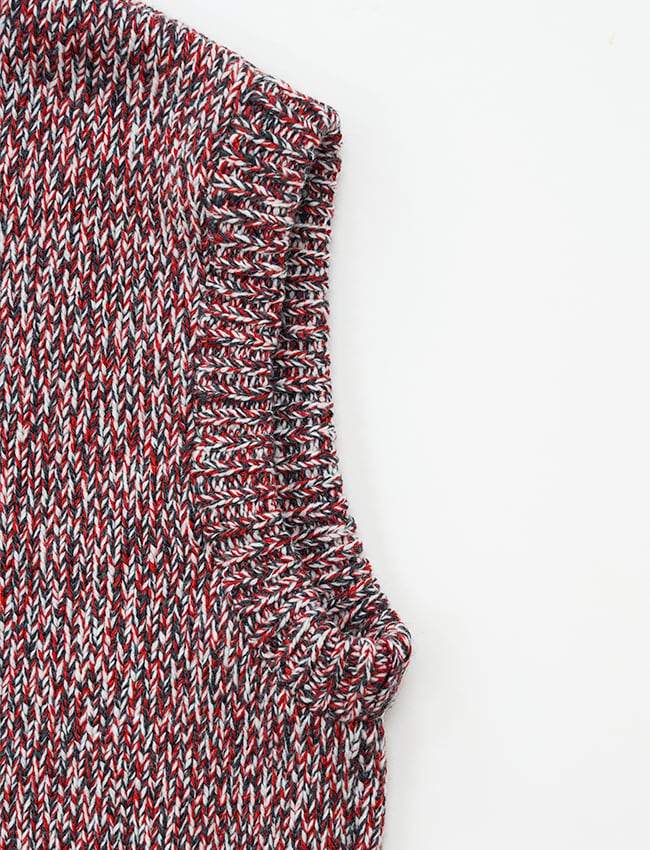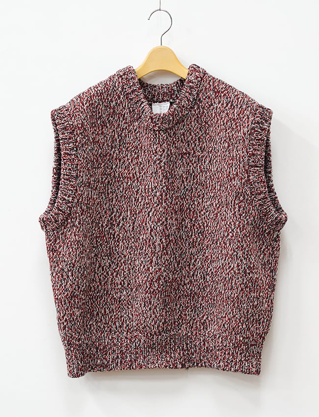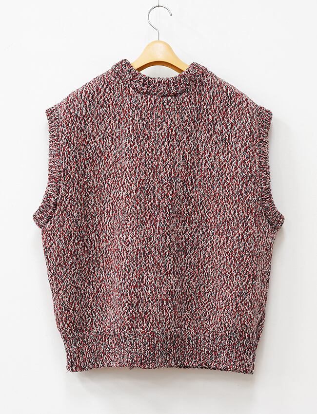 ウールとコットンを撚り合わせた、ローゲージのニットベスト。
