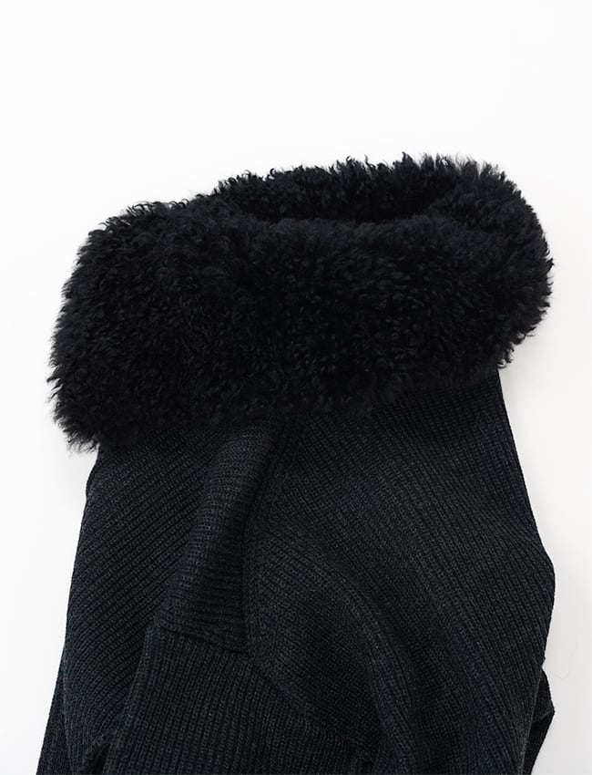 首元にはカシミヤ山羊の毛皮をそのままなめした、贅沢なムートン仕立ての仕様。