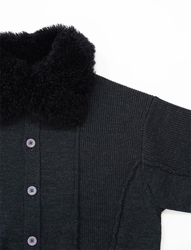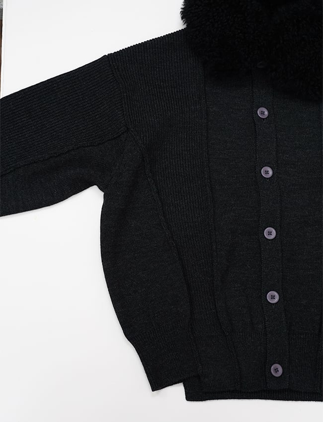 PLOTOTYPE : CARDIGAN WITH CASHMERE COLLAR / BLACK