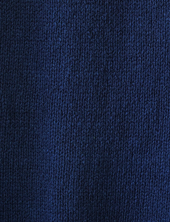 密度のある風合いは、繰り返しの水通しによるもので、ガチガチに詰まっていないもっちり質感がします。水で膨らんだ糸の反動によって、編み地を過密にしています。そうすることで、立体感のある張りが強くなり伸びも重みも最初からなかったかのような着心地と軽さがします。