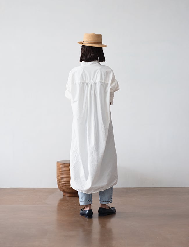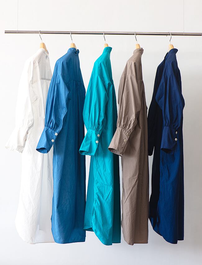 マットな光沢にしっとりとした質感は製品での洗いによるもので、生地に斑なく水分が行き渡るように通常よりゆっくりと充分に含ませて仕上げています。