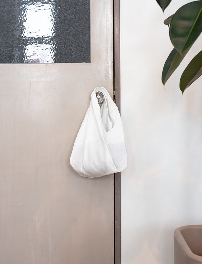 近所のホームセンターのいちばん大きいレジ袋を模した寸法で、Lサイズを最初に作って、そこから明らかに小さなSサイズをつくったので、Mサイズはちょうど真ん中くらいのサイズです。各サイズ簡素な見た目になるように忠実に仕上げています。