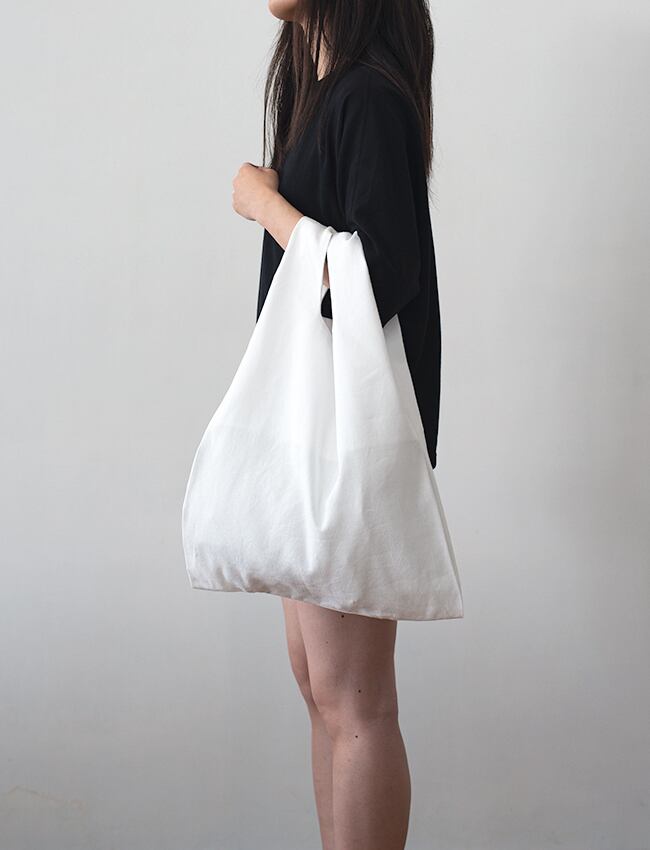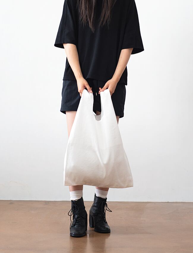 近所のホームセンターのいちばん大きいレジ袋を模した寸法で、Lサイズを最初に作って、そこから明らかに小さなSサイズをつくったので、Mサイズはちょうど真ん中くらいのサイズです。各サイズ簡素な見た目になるように忠実に仕上げています。