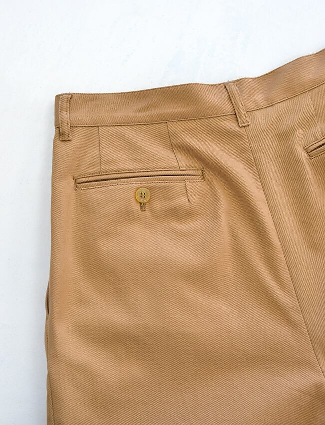 やや深めの2タックのリラックスな履き心地のコットンパンツ。