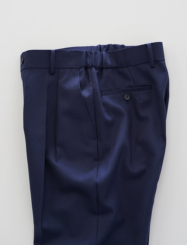 丈夫なウールを用いたクラシカルな雰囲気でありながら、シワになりにくい生地です。