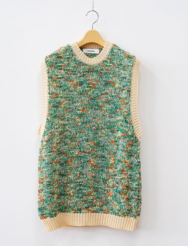 毛羽を抑え高級感のある光沢のあるコットンに、グレー・イエロー・オレンジ・グリーンの4色で染めた糸を引き揃えた素材。