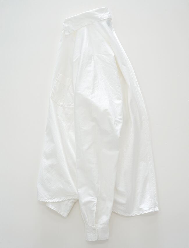 わずかに光沢のある生地は、ドライな質感とは違った湿度を含むシワ感が特徴。