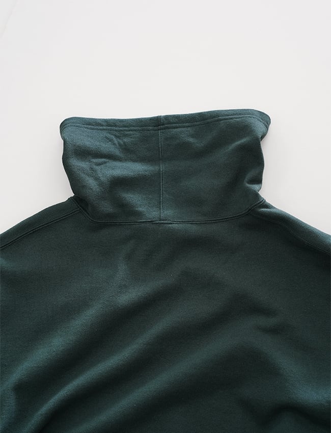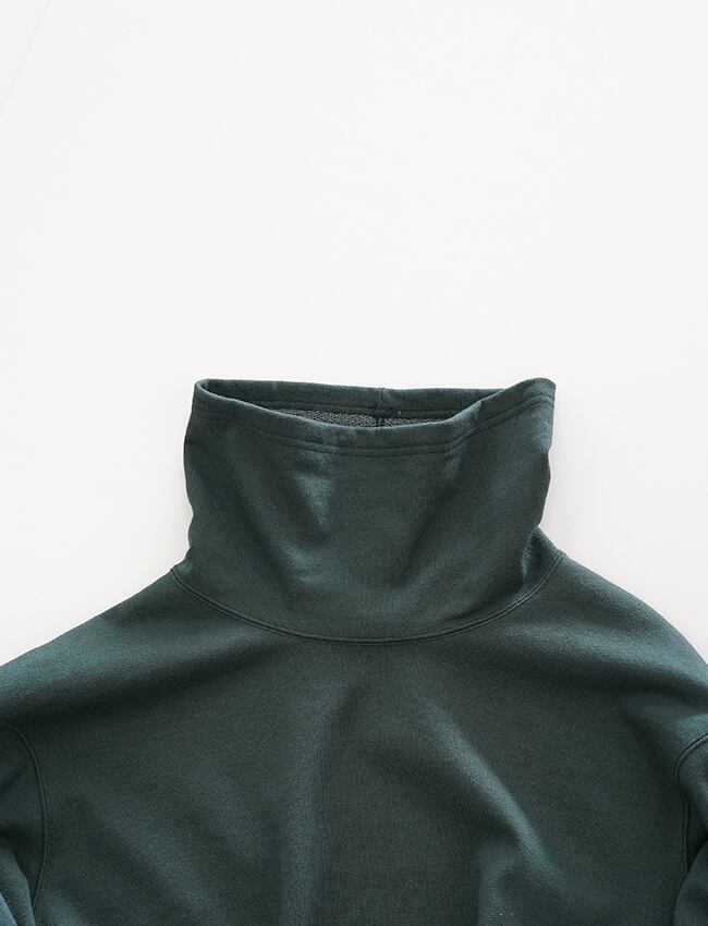 立ち上がらない立ち襟のタートルネックスウェットシャツ。
