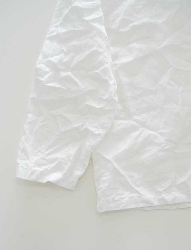 ネックの立ち上がりが厳密でない立ち襟のゆるさが特徴。